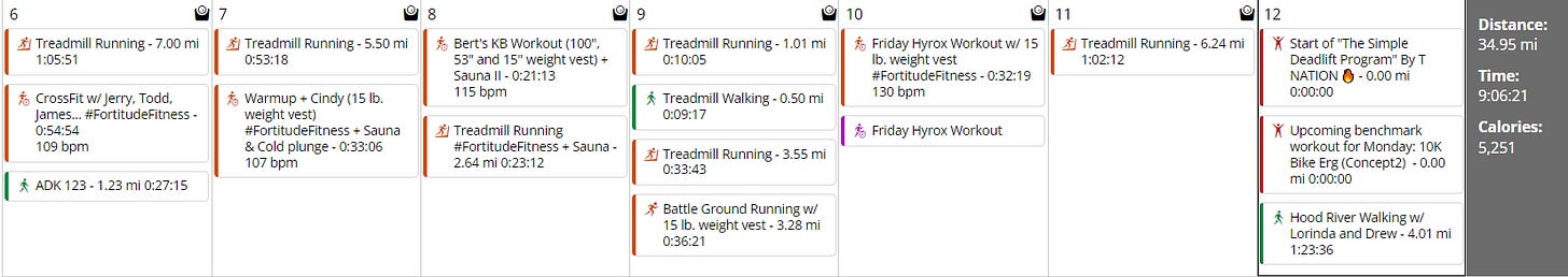 Weight vest week (Every second week I’ll use a weight vest ~15lb.)