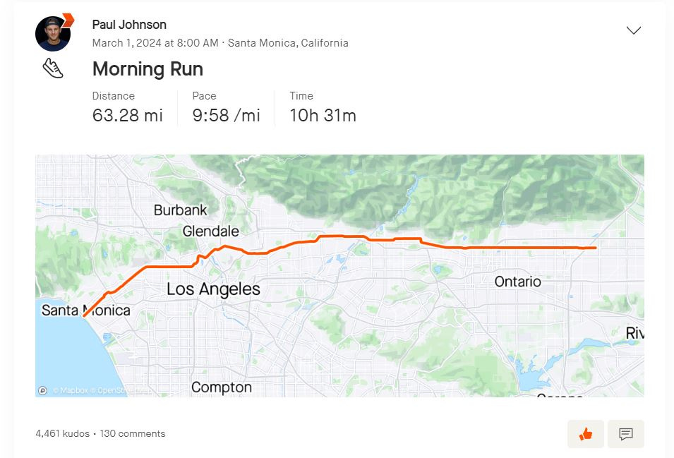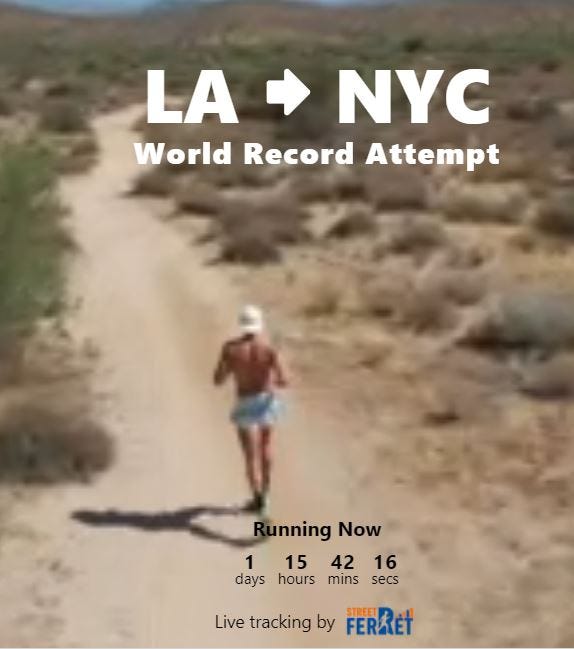 Paul Johnson is running across America right now!! "Running 3,000 miles across the United States in 40 days and fundraising for Team Red White and Blue."Andreas WettainenMar 03, 2024ShareThanks for reading Andreas’s Substack! Subscribe for free to receive new posts and support my work.Subscribe