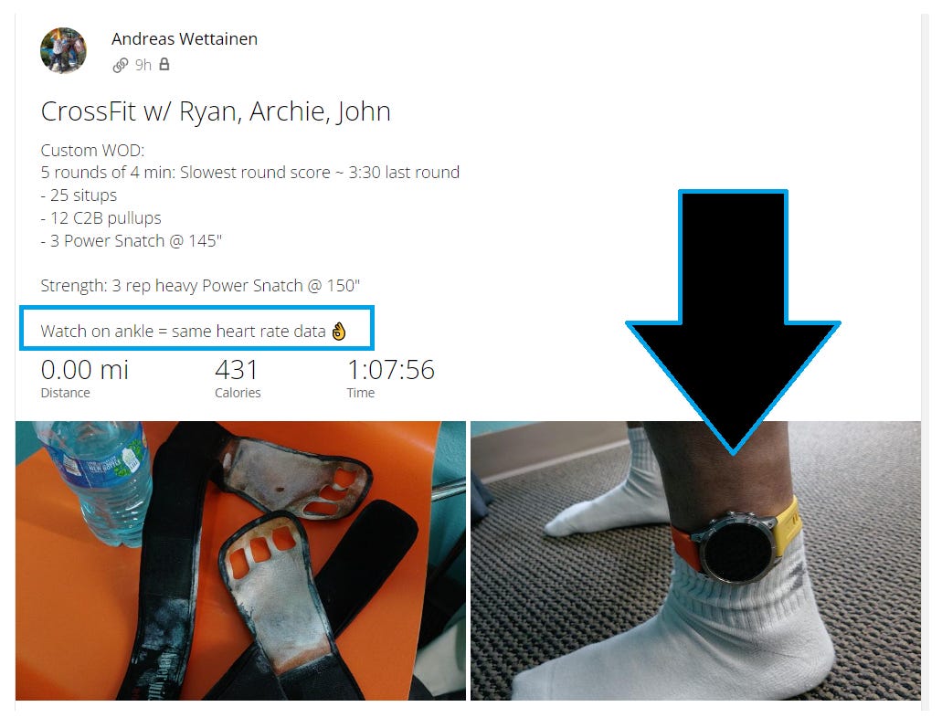 Problem, my watch is in the way. I love to analyze and compare workout data so it has been annoying not wearing it. So, today I came up with an idea to wear my watch on my ankle! (I know, not very unique)